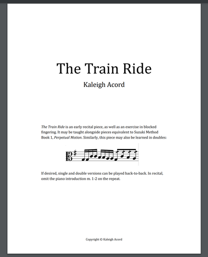 The Train Ride is an early recital piece, as well as an exercise in blocked fingering. It may be taught alongside pieces equivalent to Suzuki Method Book 1, Perpetual Motion.